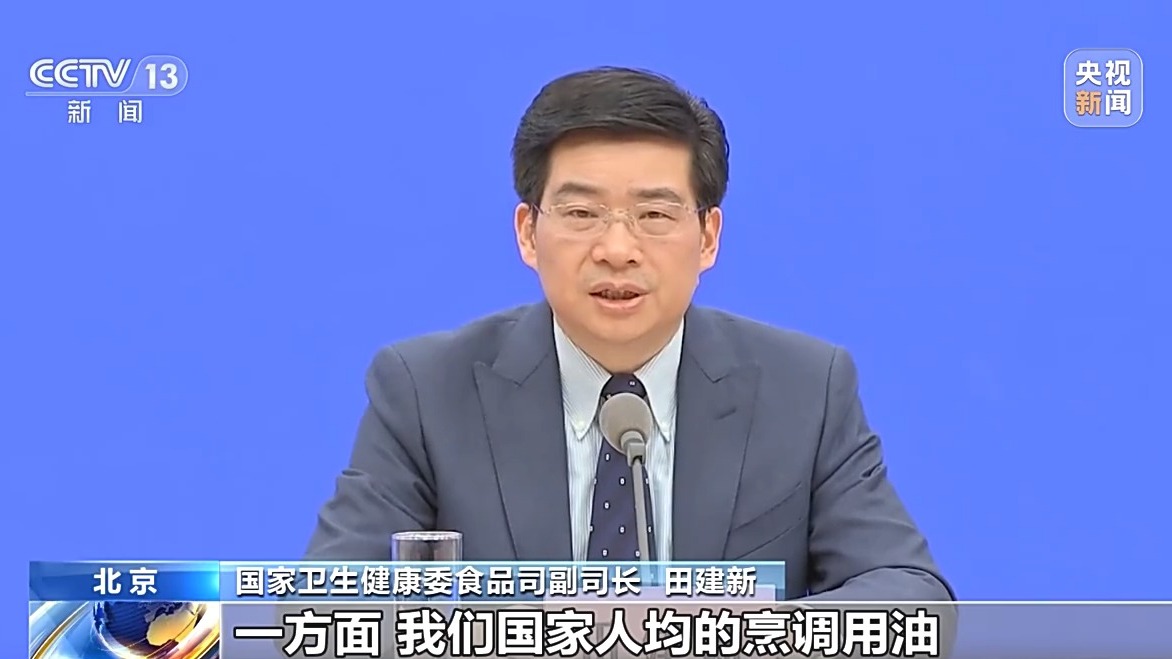 国家卫生健康委食品司副司长 田建新:一方面,我们国家人均的烹调用油,还有像猪肉、粮谷类食物的摄入量是偏多的,已经超出了膳食的科学推荐量,尤其是烹调用油超出了推荐量的40%多,猪肉超出了30%多。另一方面,像奶类及其制品,大豆及其制品,还有新鲜蔬菜、新鲜水果,这些都摄入明显不足。跟推荐膳食量相比,大豆及其制品摄入量低于推荐量的59%,新鲜蔬菜低于推荐量的47%,奶类及其制品,还有新鲜水果与推荐量的差距就更大了,达到90%左右。
