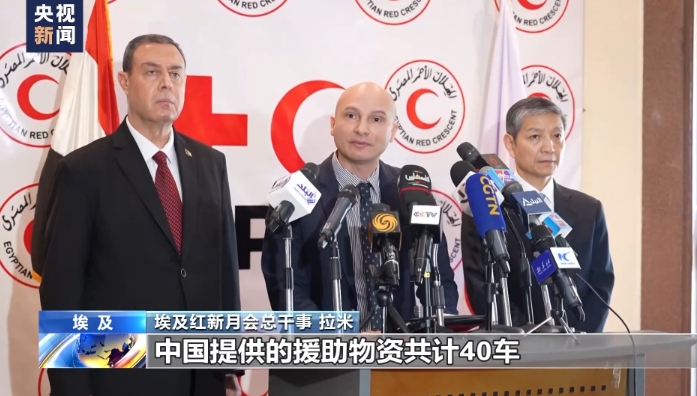 埃及红新月会总干事拉米:中国提供的援助物资共计40车,包括救灾物资、卫生物资以及医疗物资。