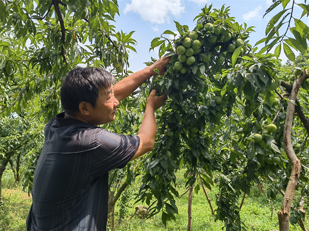 杜海以前在外面主要是到水果基地批发水果,学到一些技术后,用自己的土地种植60余亩冰脆李,周边村民看到冰脆李收成不错,也纷纷将自己的土地拿出来种植,杜海平时教村民如何给冰脆李防虫害、剪支、施肥,到李子采收时节,吸纳当地群众务工,增加群众收入。