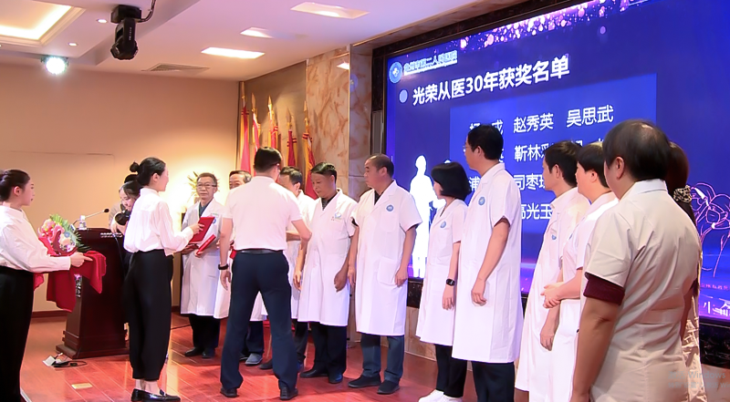 会上,院党委对“光荣从医30年”医师及优秀医师进行表彰。参会领导分别为他们颁发证书,向他们表示祝贺,并希望全体医师不忘初心、踔厉奋进,谱写盘州医疗事业发展新的篇章。