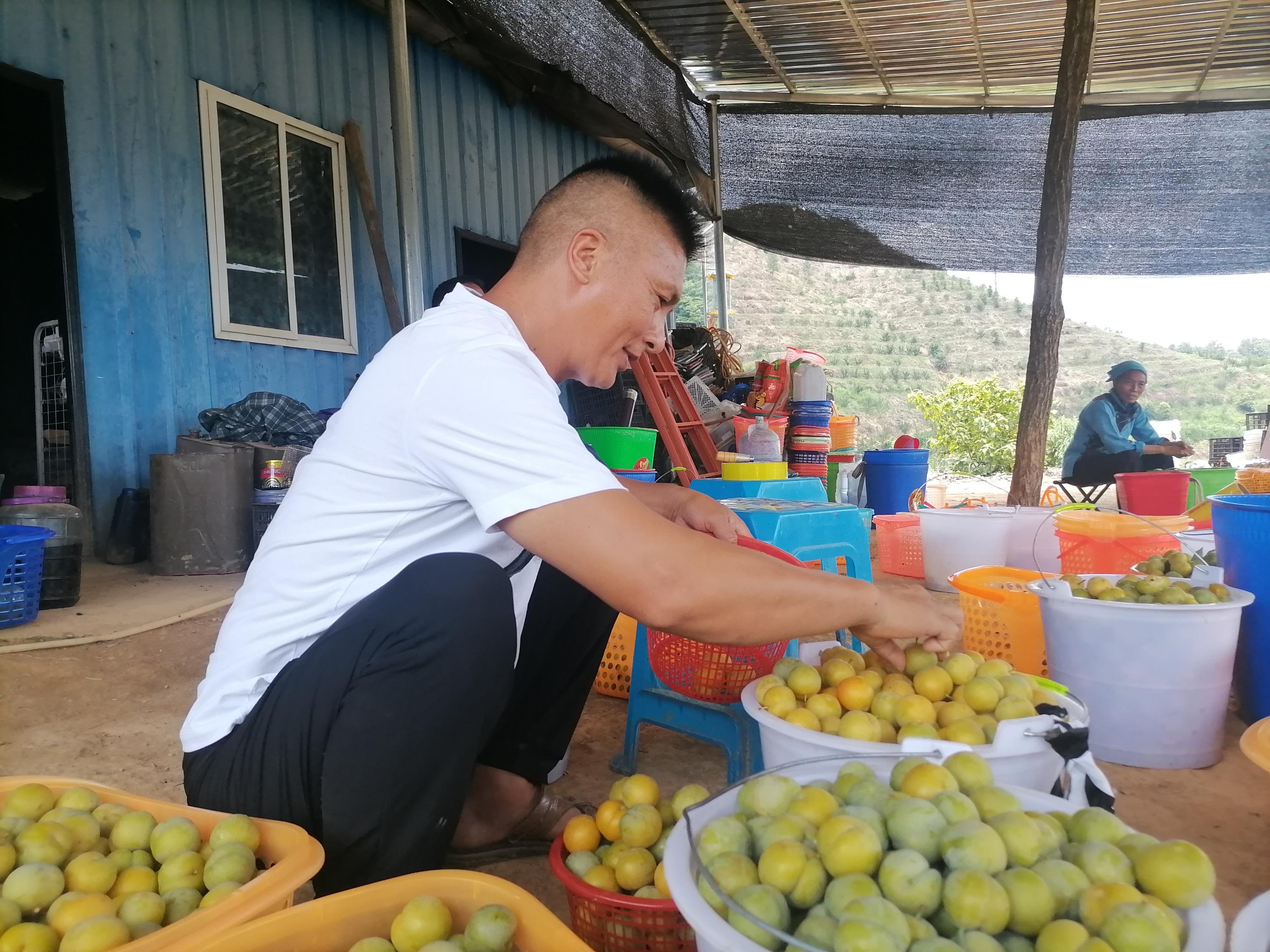 顶肖村位于南北盘江交汇处,独特的低热河谷气候,为发展水果产业提供了良好的条件。2013年,顶肖村开始种植蜂糖李,2015年初开始挂果,今年已达到丰产期,每亩产量在1000斤左右。