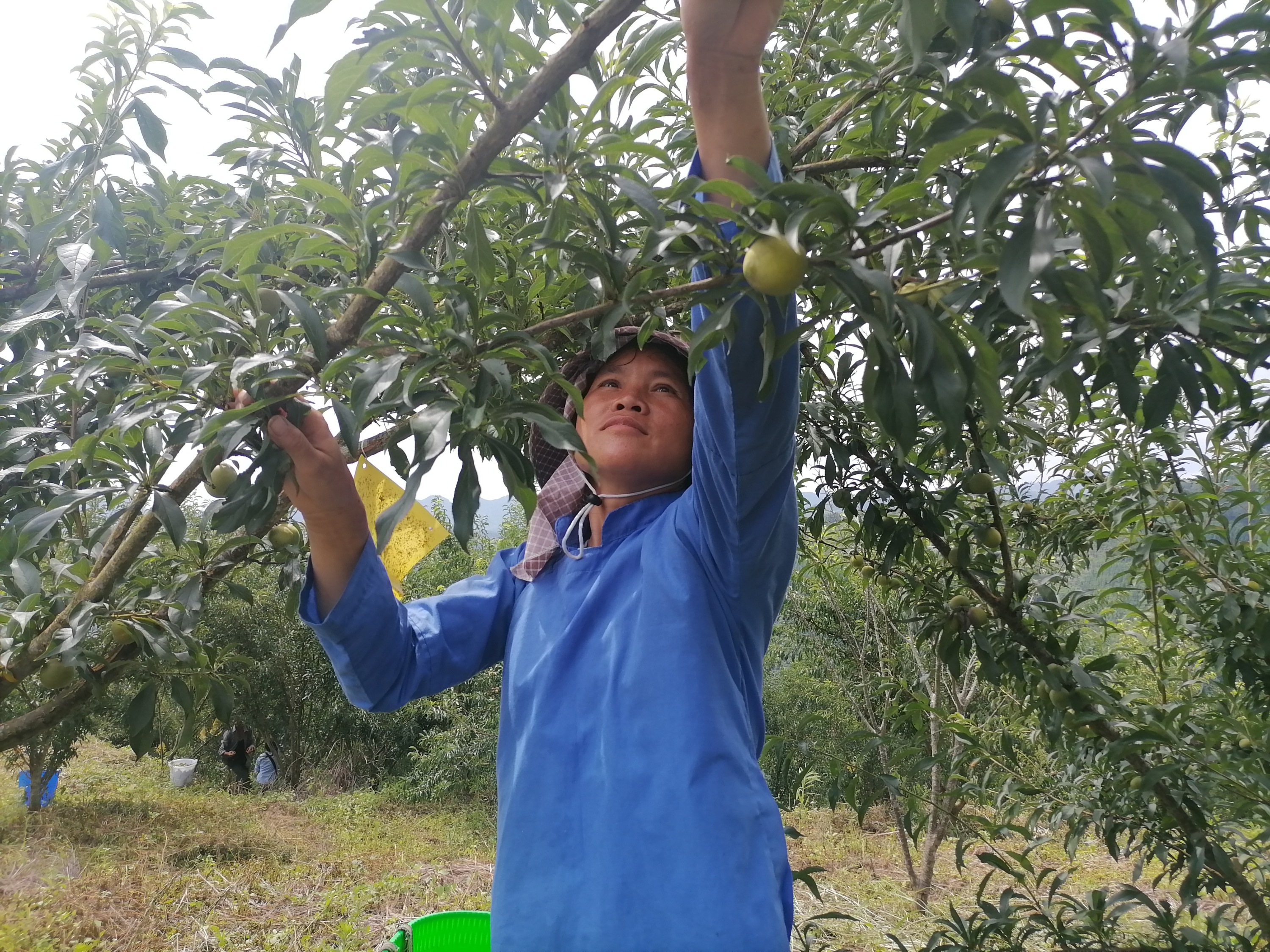 在基地的务工的工人群众王国才说:“今年来做活路(摘果),一天150块钱,我很高兴的。”