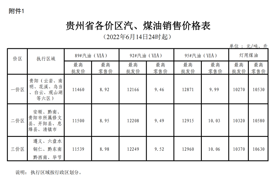 6月14日,贵州省发展和改革委员会网站发布《2022年6月14日24时起贵州成品油价格按机制上调》,全文如下: