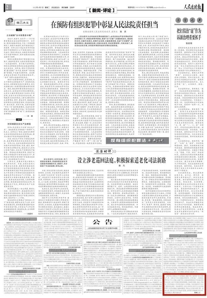 6月7日,张某履行生效判决义务,就其侵害袁隆平院士名誉、荣誉的错误言论在《人民法院报》上公开赔礼道歉。
