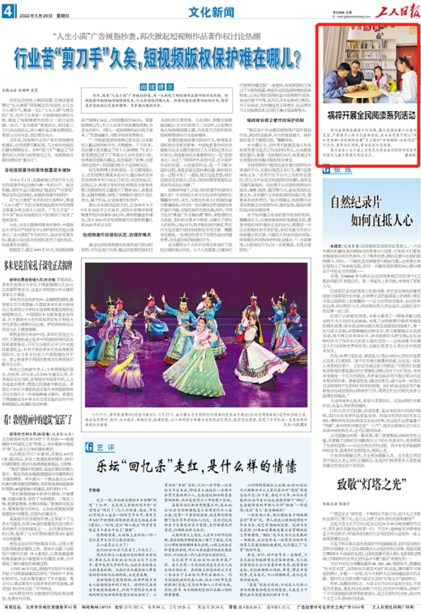 今天(5月29日),《工人日报》刊发新闻《桐梓开展全民阅读系列活动》。