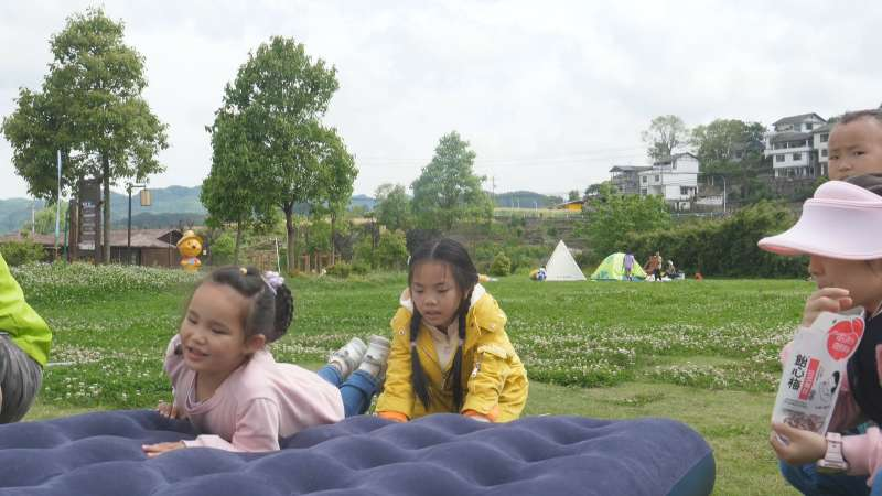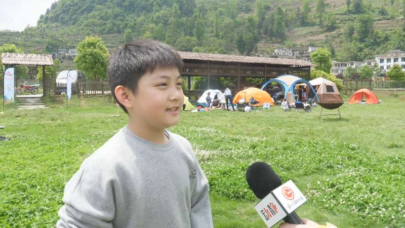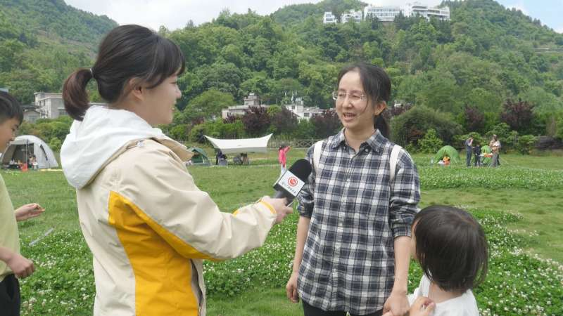 带着两个孩子参加露营活动的市民潘光芹觉得在家里面孩子要么看电视、玩手机、电脑、平板,因为疫情原因出省玩也不方便,所以就在周边选择了一个地方,带孩子出来体验一下大自然。