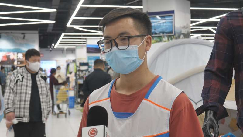 正在购买露营商品的市民杨世雄认为现在去住民宿或者酒店,费用会相对高一点,他的家庭人数比较多,所以选择露营会比较经济实惠。