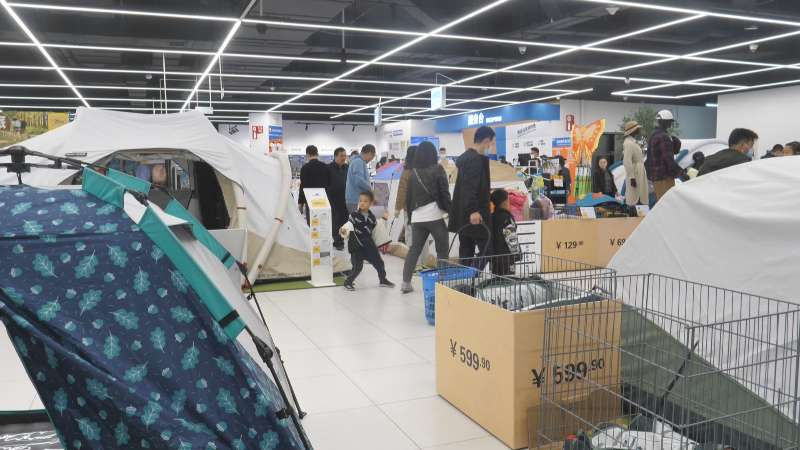 在贵阳市观山湖区的某运动品牌店里,记者观察到,在下午的短短两个小时内,售价599.9元的三人露营帐篷就卖出了28件。同样热销的还有野餐垫、天幕、睡袋等户外产品。