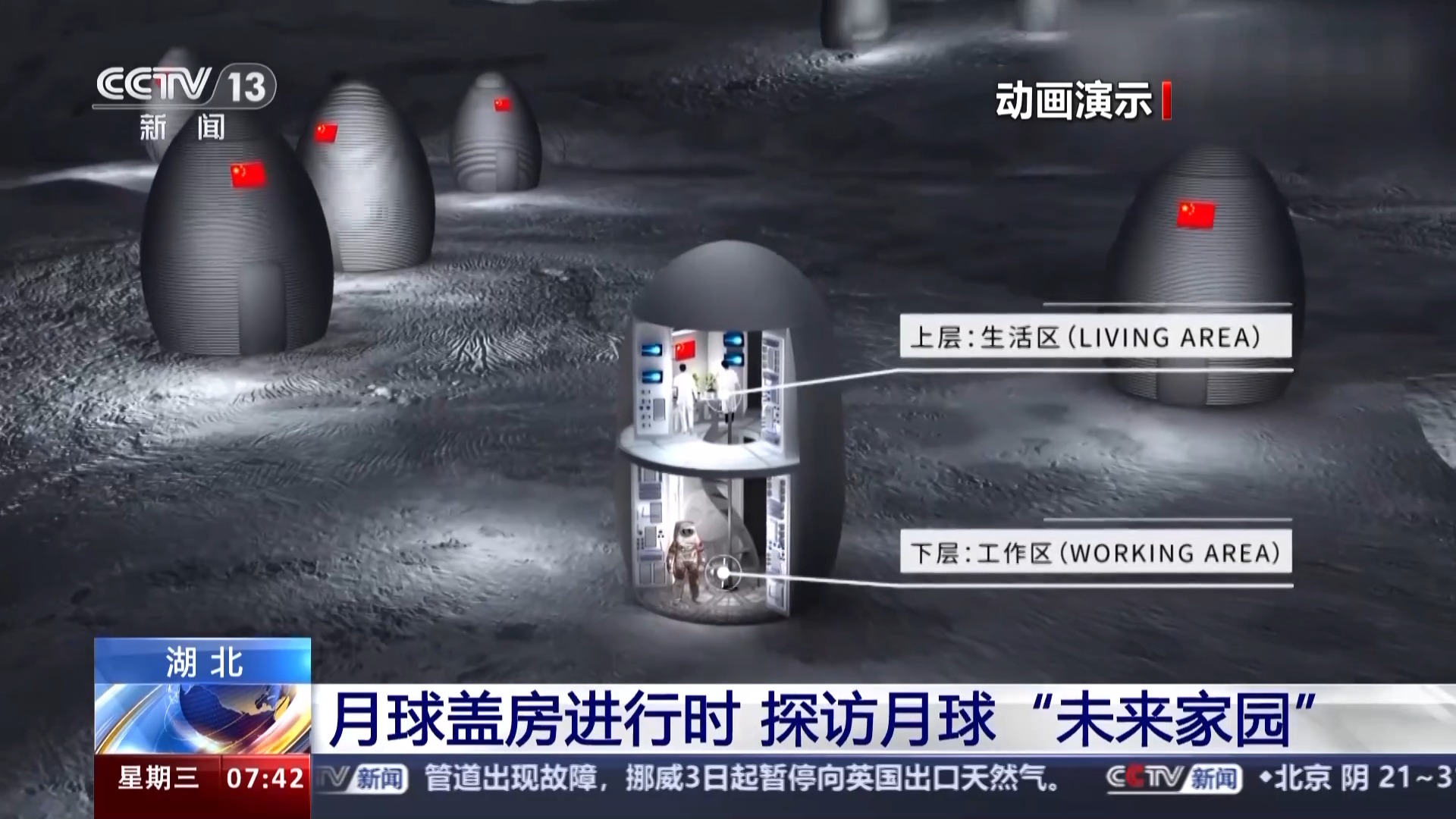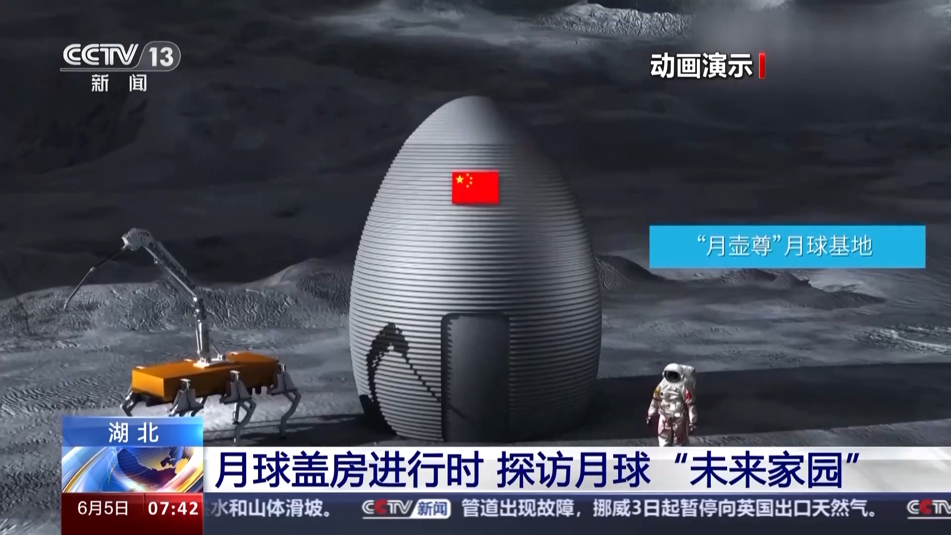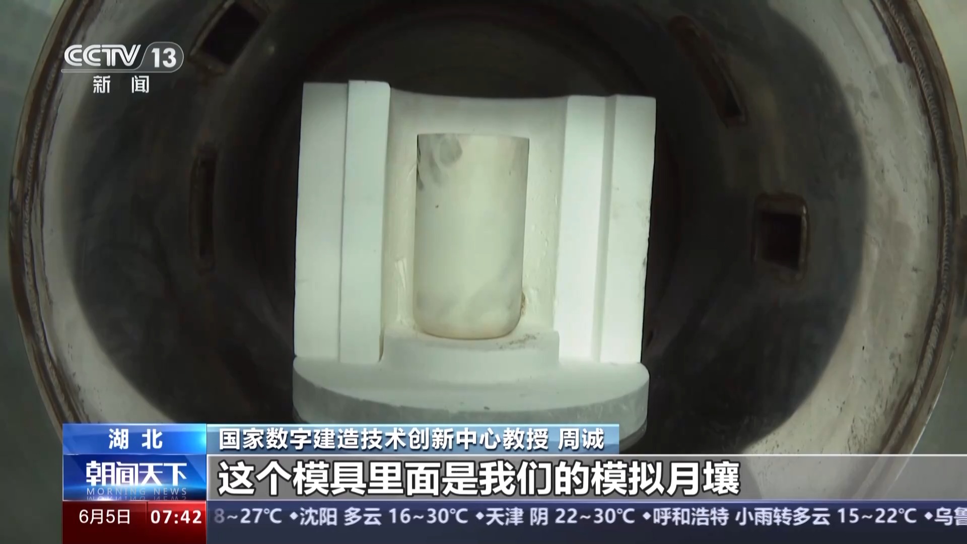 国家数字建造技术创新中心教授 周诚:我们通过这种3D打印的方式,能够在月面开展一些结构的快速建造,这是我们能够利用原位材料形成的工艺方法,也是能够实现在月面进行大规模建造的方式。