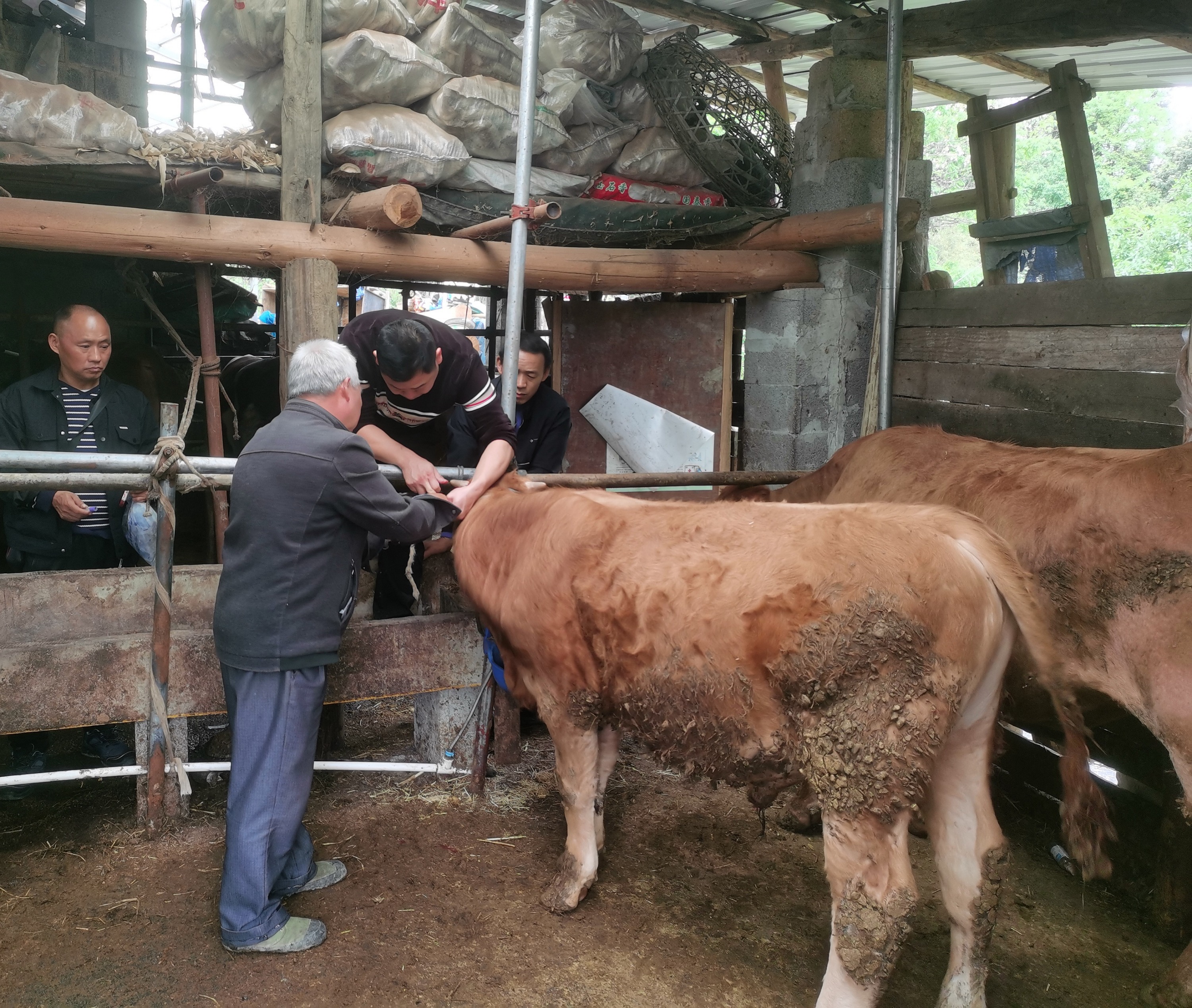组建一支宣传队伍。村支“两委”组成宣传工作队,组织党员、致富带头人开展入户走访,以入户、召开群众会等方式宣传奖补、肉牛保险等政策,让群众全面掌握最新惠民政策,及时享受政策红利,8个村(社区)各安排一名“辅导员”协调对接群众在发展肉牛产业所遇到的疑难问题。在资金上,有“进牛资金找组织”的好政策,积极对接信用社,为养殖户提供金融政策支持,增加扶贫小额贴息授信额度,有效解决脱贫人口、监测户、预警线索户资金难题,支持群众有钱购牛,新建和改造老旧圈舍,种植饲草发展肉牛产业。目前全镇已为127户办理“养牛贷”328万元,已兑现财政衔接资金脱贫(监测)户养牛产业奖补101户,97.6万元。