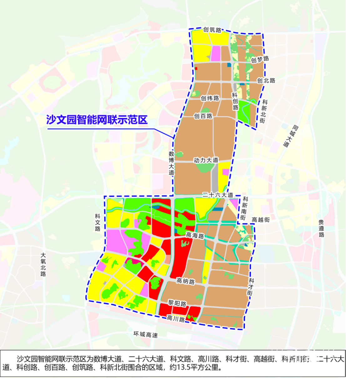 “持证上岗”的无人驾驶小巴可在沙文园智能网联示范区的特定开放道路测试。具体包括:数博大道、二十六大道、科文路、高川路、科才街、高越街、科新南街、二十六大科创路、创百路、创筑路、科新北街的围合区域,行驶范围约13.5平方公里。