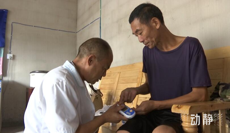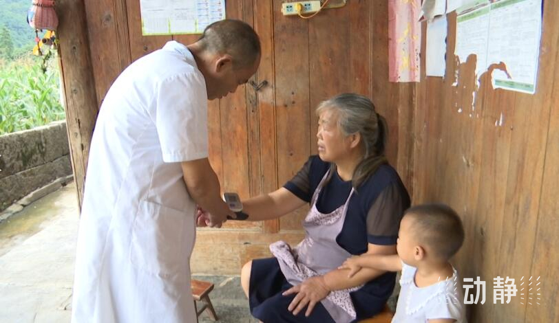 在江口县民和镇凯里村,该村村医姚志军对签约对象进行慢病随访、用药指导和健康宣教等服务,并为村民开展血压、血糖、血脂等常规检测。