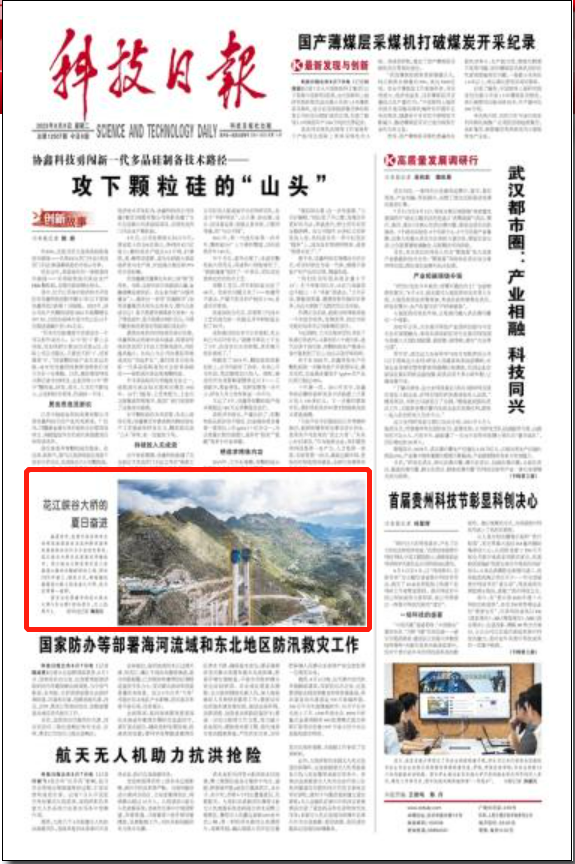 今天(8月8日),科技日报刊发新闻《花江峡谷大桥的夏日奋进》。