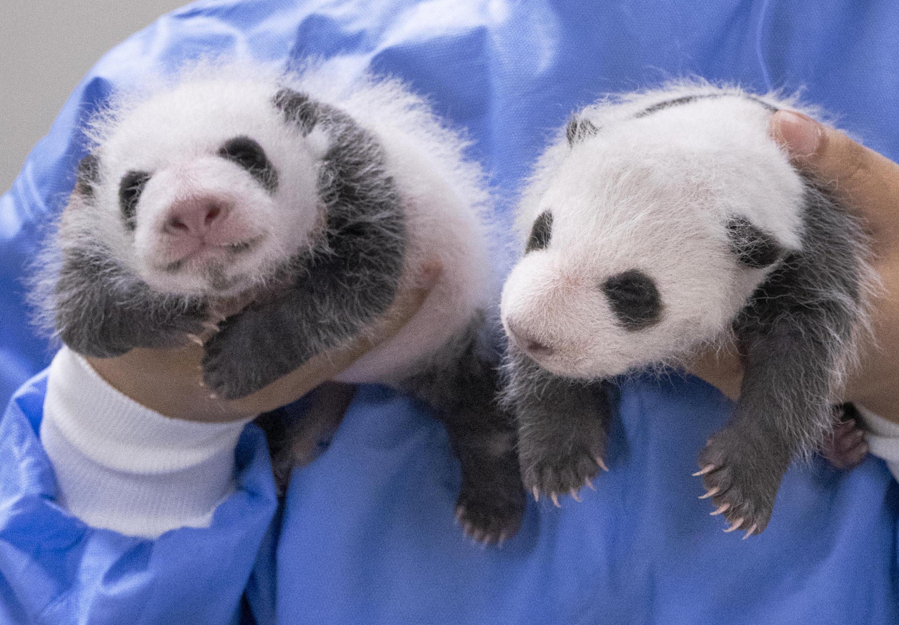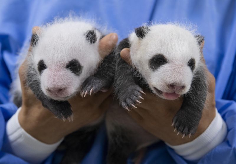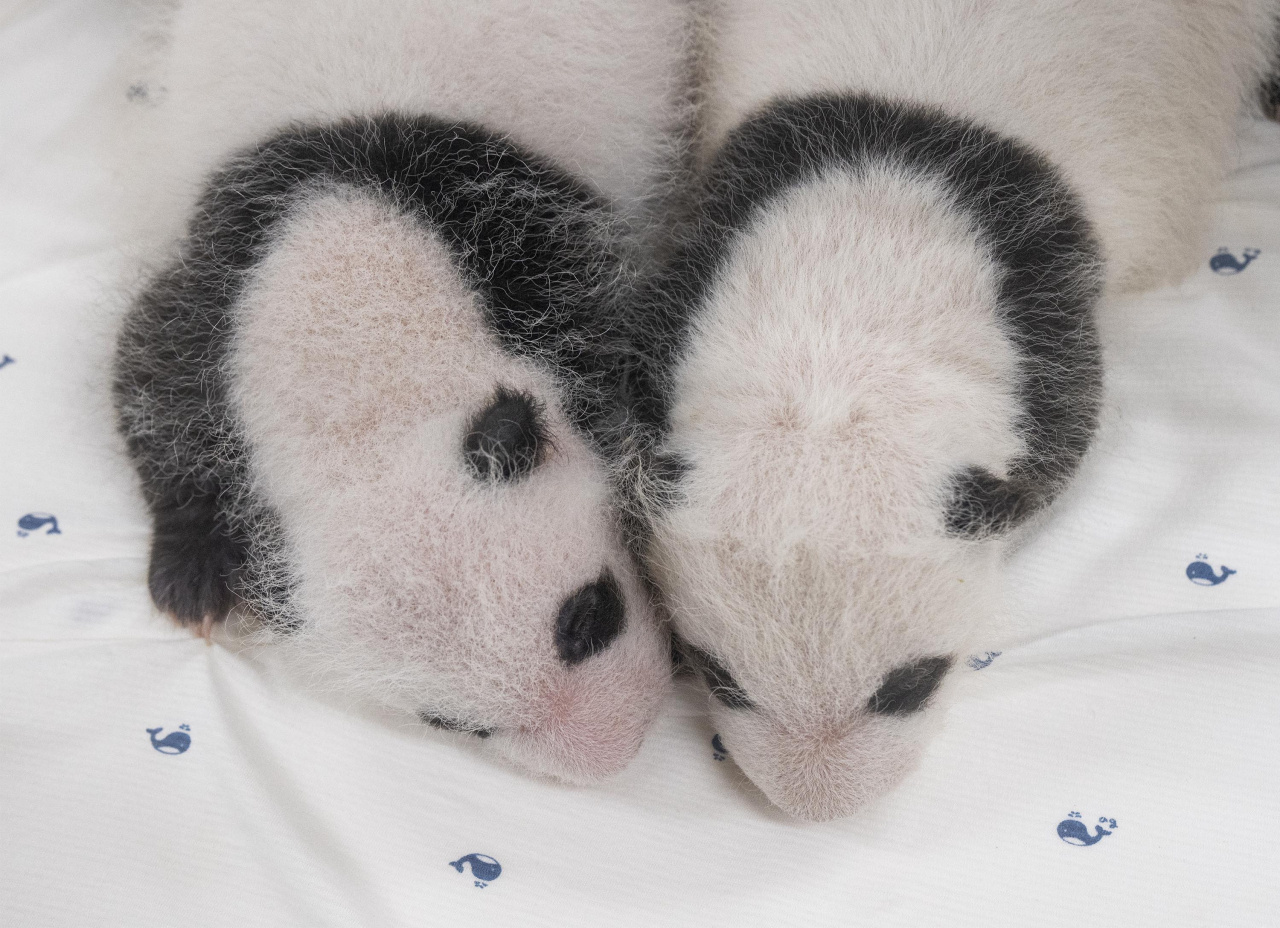 韩国纽西斯通讯社表示,双胞胎幼崽的眼部已经出现明显的黑色花纹,像戴了墨镜一样。报道还说,两只宝宝的体重,分别从180克和140克增至1.1公斤和1.2公斤,可谓“暴风成长”。