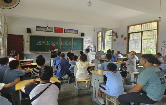 (图为:7月11日,雷山县郎德镇相关负责人利用郎德小学召开毕业班家长会间隙,对学生及家长开展“三防”教育宣传)