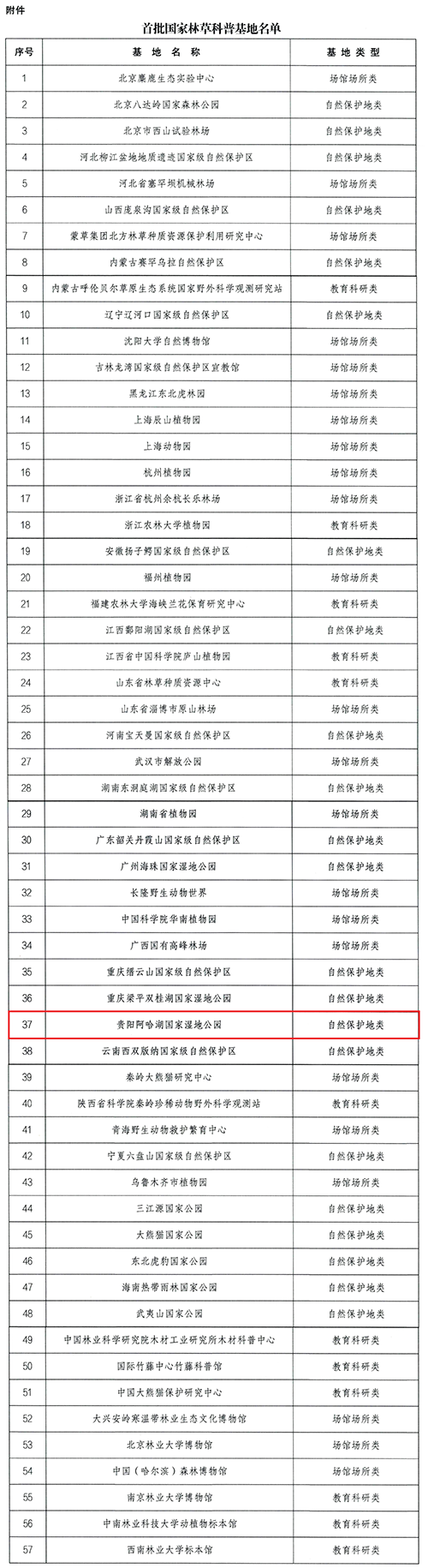近日,国家林业和草原局、科学技术部公布首批国家林草科普基地,贵阳阿哈湖国家湿地公园入选。