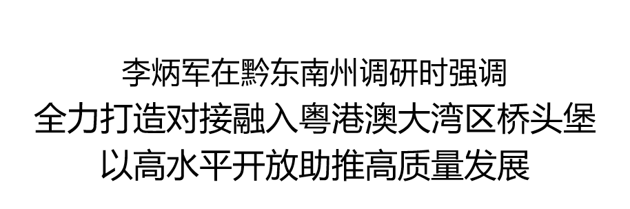 黔东南州“黎从榕”地区是贵州南下粤港澳大湾区的前沿阵地。李炳军来到从江县“桥头堡”核心区,听取规划建设和重大项目推进情况。在粤黔共建东西部协作现代产业园,李炳军详细了解产业规划、招商引资和项目建设情况。他强调,打造对接融入粤港澳大湾区“桥头堡”,要用好东西部协作机遇,尊重市场规律,立足比较优势和产业基础选准主导产业,大力开展产业大招商,积极主动承接产业转移,做足特色旅游大文章,吸引大湾区人流、物流、信息流、资金流集聚发展,实现优势互补、互利共赢。要锤炼过硬作风,发扬主动精神,苦干实干,优化环境,加快推动“桥头堡”建设取得更大成效。李炳军还来到榕江县工厂化智能育苗中心,认真听取黔东南州大湾区“菜篮子”基地建设情况汇报,要求紧贴市场需求,加强优质品种选育,大力发展绿色优质农产品,推动更多特色农产品进入大湾区市场。
