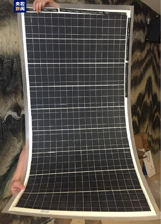在中科院上海微系统所,科研人员向记者展示了他们研制的高柔韧性单晶硅太阳电池,太阳电池在科研人员手中就像我们平常看到的一张纸可以大角度弯曲。