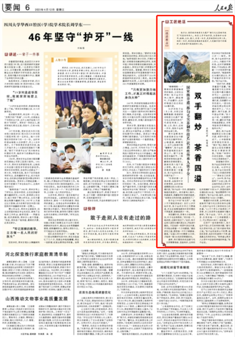 区别于一些非遗传承人,张子全并不担心手艺的传承问题,“都匀毛尖茶有市场,这门技术就有用武之地。”张子全收徒弟从不收费,每到采茶季,他的手机就响个不停,都是慕名而来的学生,“我希望让更多人从茶叶中品尝到幸福的味道。”张子全说。