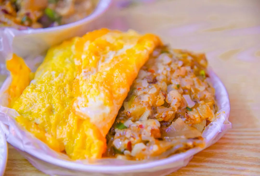 遵义炒洋芋在炒制过程中浇上卤水和辣椒面,叮叮当当一阵剁,让洋芋充分和卤水融合。炒洋芋不光只有洋芋而已,可以根据顾客需要往里面加鸡蛋、苕粉、米皮、米粉、糯米饭等等。