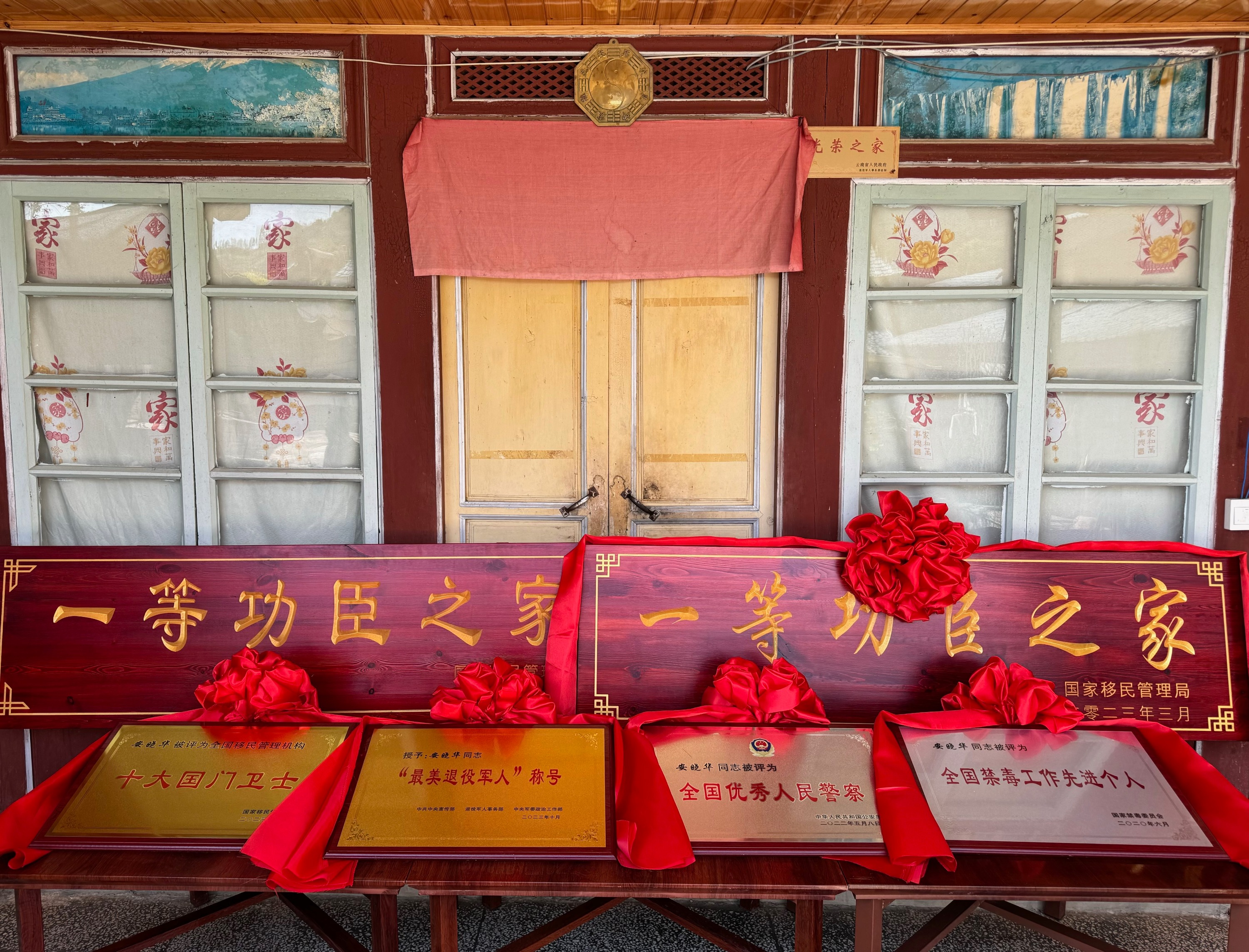 “送匾”一行人手持“一等功臣之家”“全国最美退役军人”“全国优秀人民警察”“十大国门卫士”“全国禁毒先进个人”多块功勋牌匾前往安晓华家中。与以往送奖到家的热闹场面有所不同,安晓华长期战斗在禁毒工作一线,出于保护他及家人的考虑,大家就将喜报静悄悄地送到了安晓华家中,与其他一等功臣送奖到家的敲锣打鼓、披红戴花的热闹景象形成了强烈的反差。