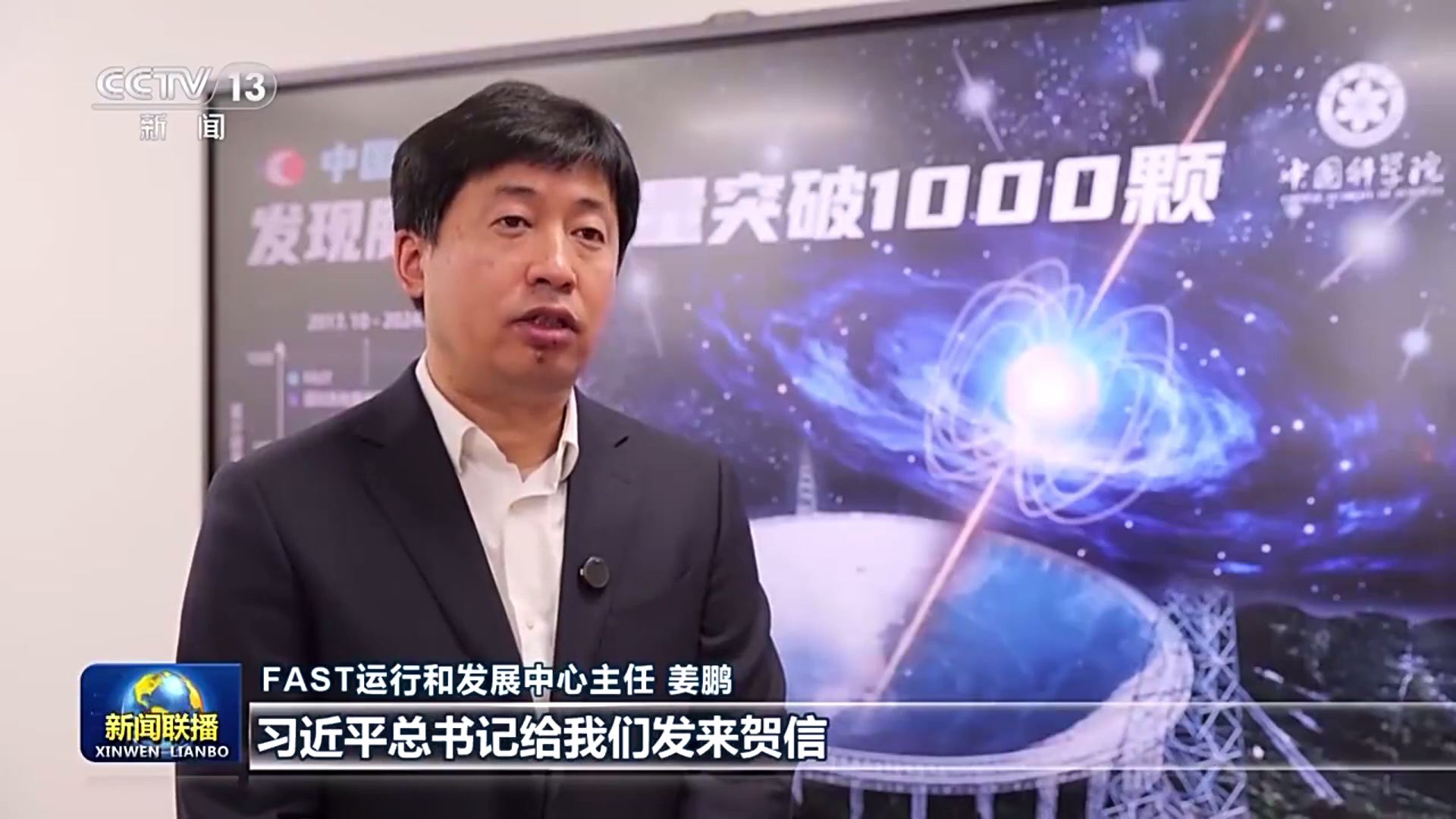 FAST运行和发展中心主任姜鹏:“批量地发现脉冲星是给你提供一种机遇,就是我们产生重大科学发现的这种机遇。在2016年中国天眼建成时,习近平总书记给我们发来贺信,也要求我们高水平管理和运营好这一重大科学基础设施。我们现在仅用几年时间就走到了最前沿,可以说为我们人类认识宇宙太空这些奥秘,做出了我们中国的贡献。”