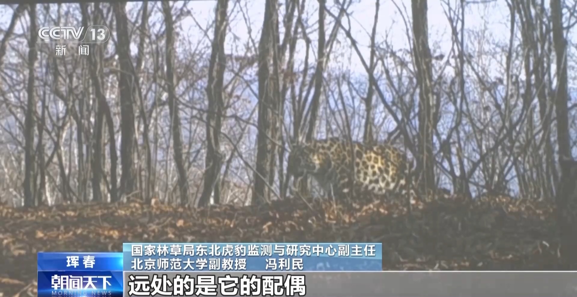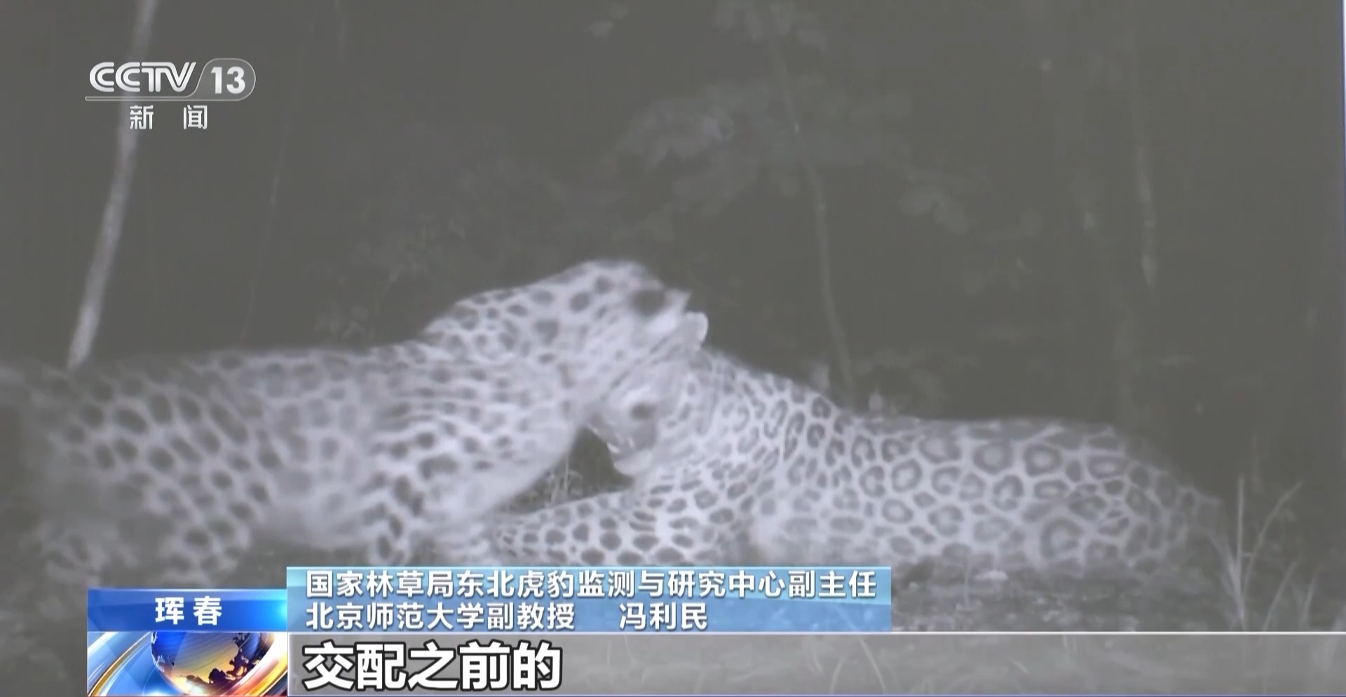 国家林草局东北虎豹监测与研究中心副主任 北京师范大学副教授 冯利民:这是2021年的时候。这是很典型的,交配之前雌豹和雄豹在发情时候的行为。