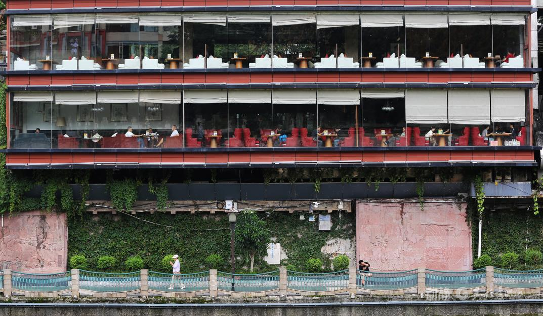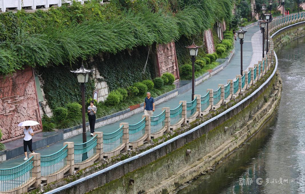 河畔步道,绿植爬满石壁,微风拂过,带来河水的清凉与草木的芬芳。人们或漫步,或驻足,在这一方天地里,与时光温柔对谈。沿街商铺透着暖光,“贵州龙”里飘出美食的香气,外卖小哥穿梭而过,为城市的烟火气添上灵动的一笔。还有幼儿园外,家长们满怀期待的等候,那是关于希望与成长的故事在悄然上演。