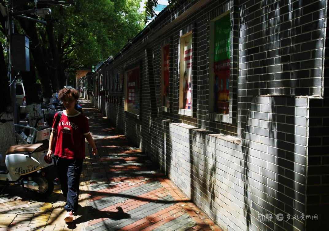 阳光透过枝叶,在青灰的砖墙上织就斑驳的网,行人悠然走过,影子被拉得老长,与墙上的宣传画相映成趣,那是生活最本真的模样。巷口的石狮静默矗立,仿佛还残留着昔日兵戈的气息,见证着岁月流转。不远处,现代楼宇与古雅建筑和谐共生,诉说着城市在历史传承中的创新与发展。