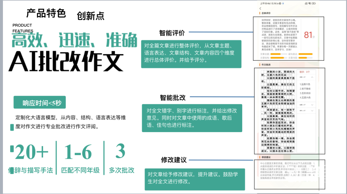“目前,定制化大语言模型已经可以对作文进行专业的批阅,对于采用了20多种修辞手法的作文,进行批改的响应时间只要5秒”,贵州电子信息职业技术学院教授佘勇现场推介了一款针对作文批改的AI应用工具。