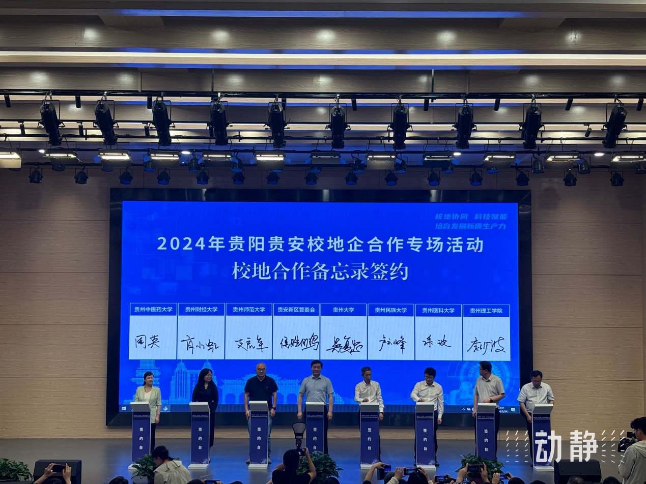 活动现场,贵安新区管委会与贵州大学、贵州师范大学等7所省内高校签署合作备忘录,构建校地联动常态化机制,推动高校科技成果就地转化。