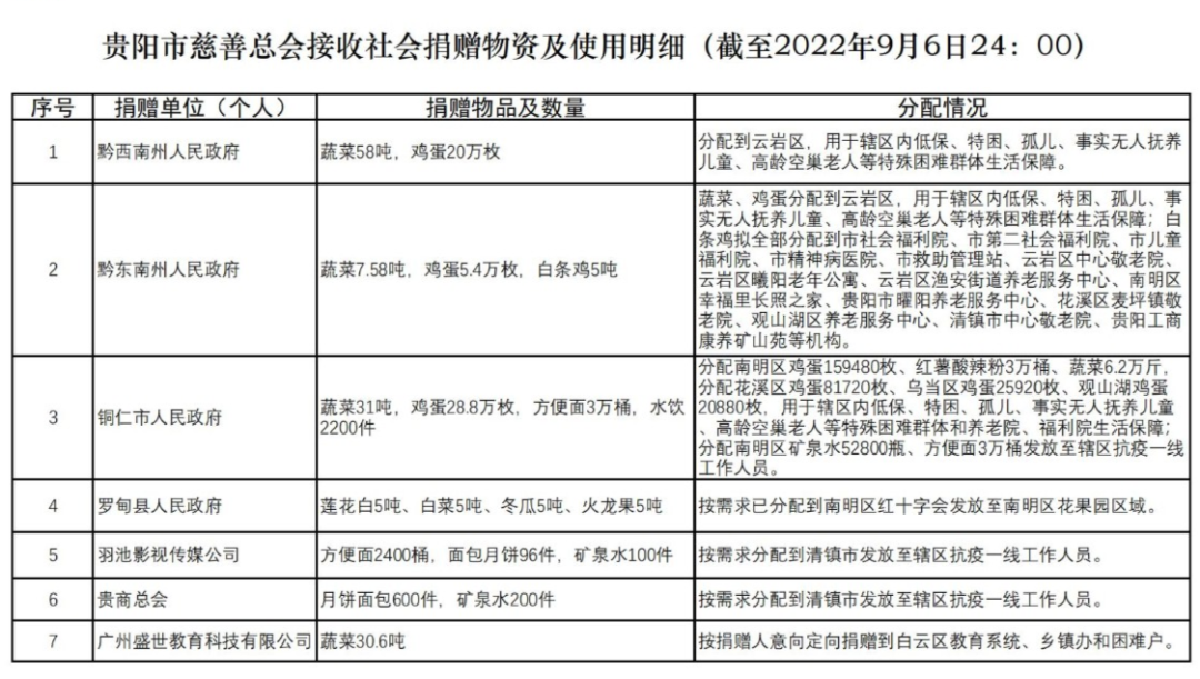 附件:贵阳市慈善总会接收社会捐赠物资及使用明细(截至2022年9月6日24:00)
