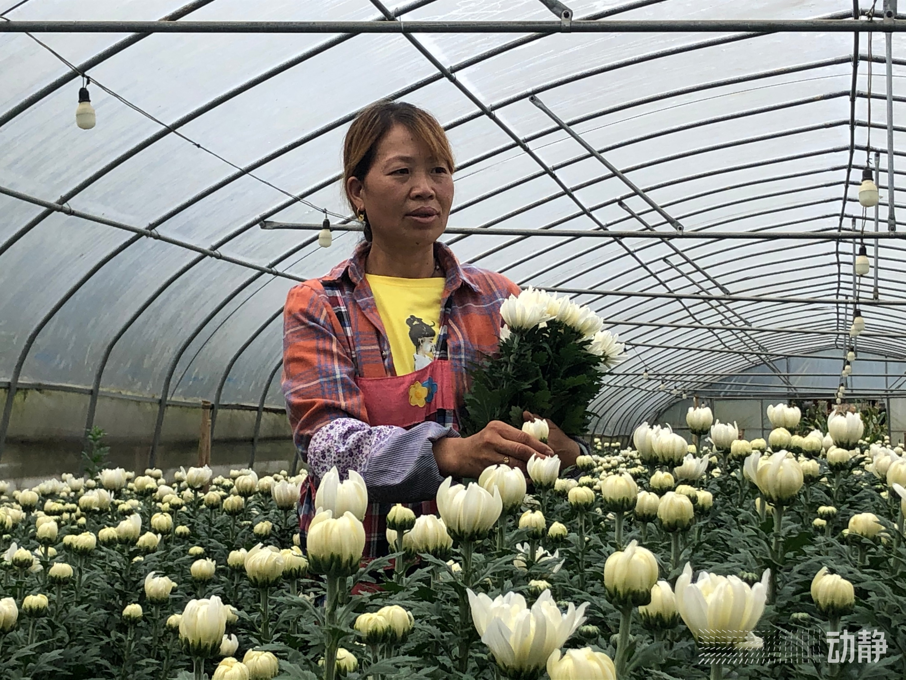 金沙县平坝镇三岔村村民叶良艳说:“我家是三岔的,他们在这里种植菊花,我就在这里干活,做了两年半了,每月务工有三四千块钱,在我们当地有这样的收入是很不错的。”