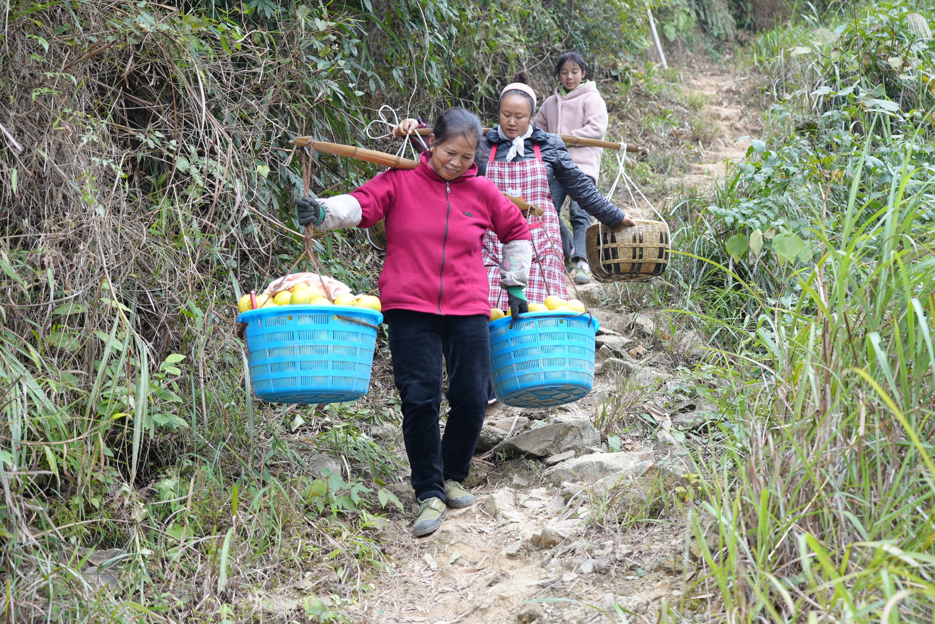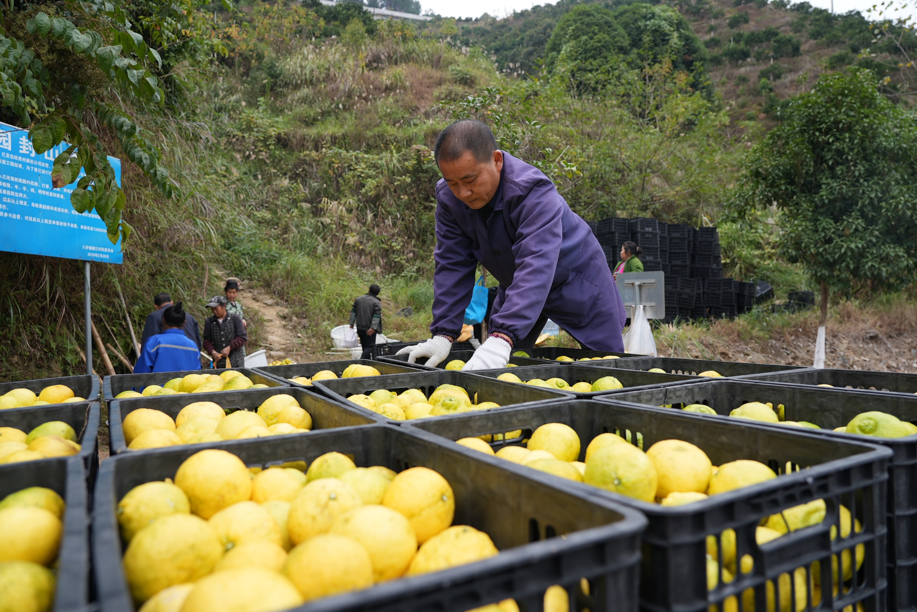 眼下,正值黄金柚成熟的黄金季节,在贵州省黔东南苗族侗族自治州榕江县八开镇都江村满山遍野的黄金柚挂满枝头,颗颗个大饱满金黄色的果实十分诱人,村民们正忙着采摘、装框、挑运、分拣、称重、装车,一派繁忙的丰收景象。