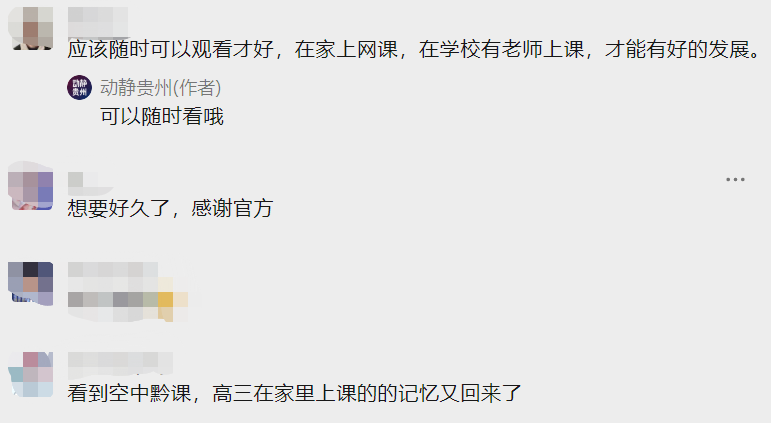 “阳光校园·空中黔课”由贵阳、遵义、安顺、黔南、黔东南、黔西南、毕节、铜仁、六盘水九个市(州)教育局共同承担,所有的课程凝聚着贵州教师的心血,看到同学们这样认真学习,相信老师们一定倍感欣慰。