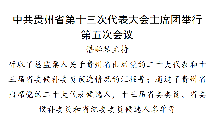 4月27日,中共贵州省第十三次代表大会主席团举行第五次会议。