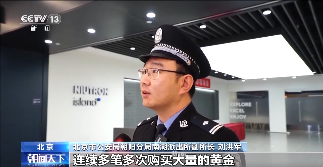 北京市公安局朝阳分局南湖派出所副所长 刘洪军:他和一般的消费者还是有所区别的,就是在同一个时间,连续多笔多次购买大量的黄金,日常咱们老百姓是没有这么购物的。
