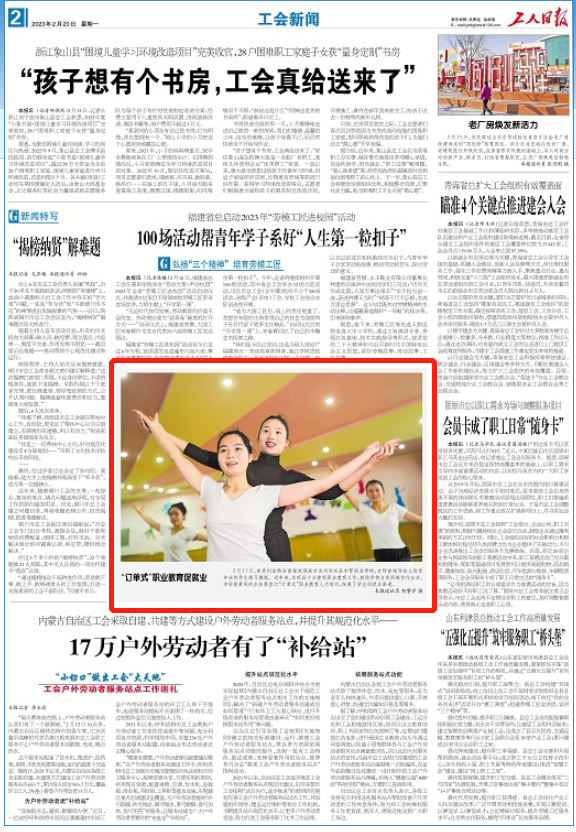 今天(2月20日),《工人日报》刊发新闻《“订单式”职业教育促就业》。