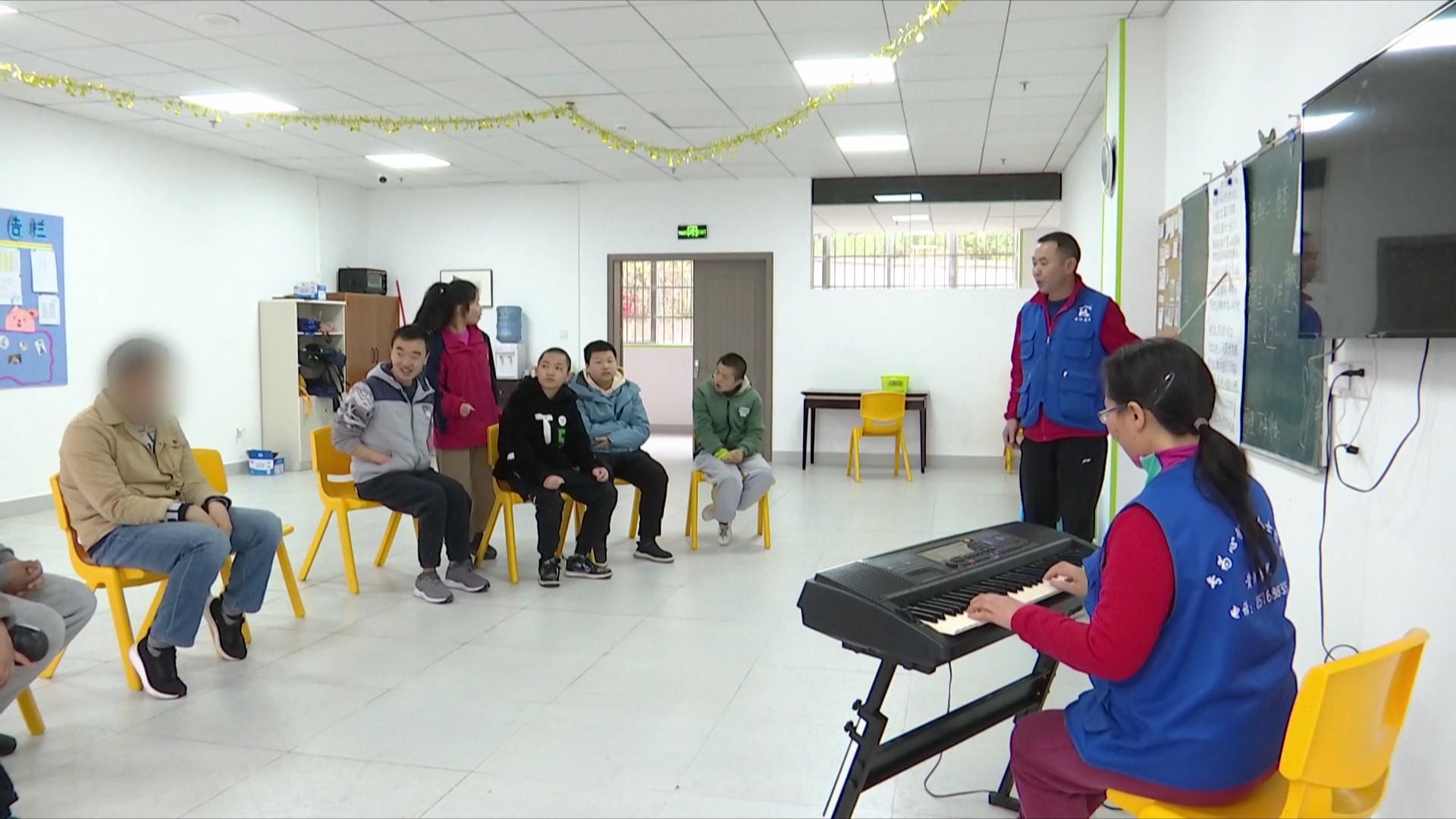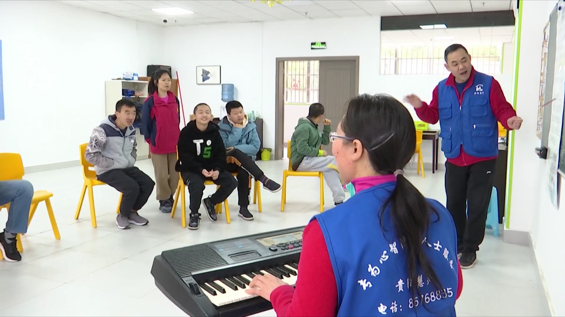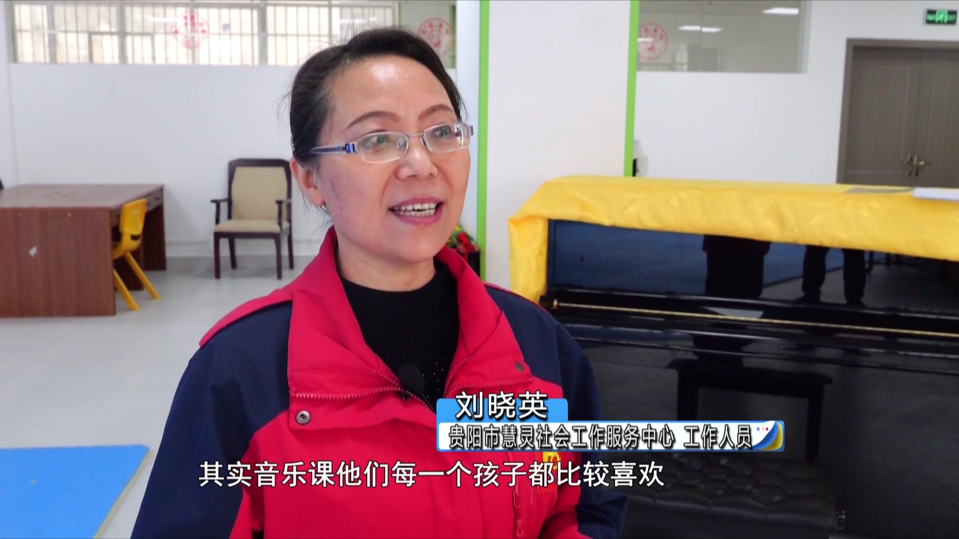 贵阳市慧灵社会工作服务中心 工作人员刘晓英:他们每一个孩子都比较喜欢音乐课。每个学员接受能力的差异是不一样的,有些他有一点音乐感,有一点节奏感,就稍微接受快一点,但大多数人喜欢却不一定学到这里的音乐知识点。