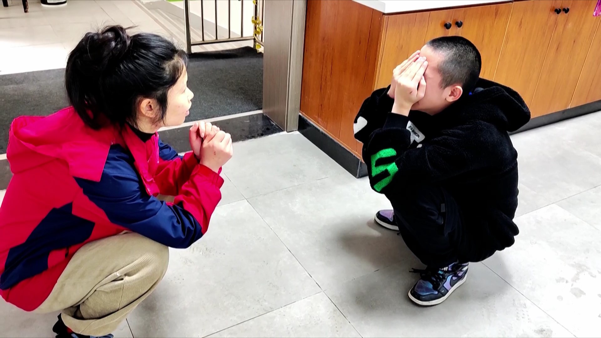 彭梅说,由于颜轩阳没有语言功能,不知道他闹情绪的原因,她只能尝试和他慢慢沟通。