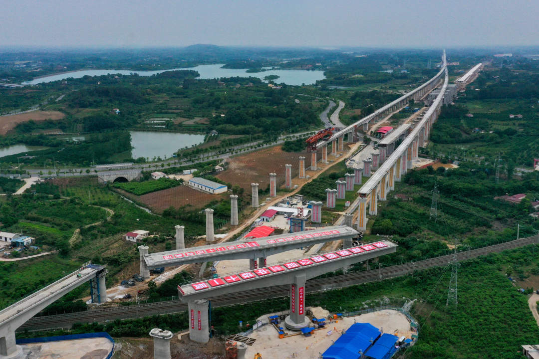 5月18日,由中铁十一局承建的荆荆高铁荆门特大桥转体梁与中铁二十四局承建的沪渝蓉高铁太白集特大桥转体梁,经过70分钟转体施工,成功跨越焦柳铁路,分别实现精准对接。这是全国首次两座不同高铁特大桥同步同时转体。