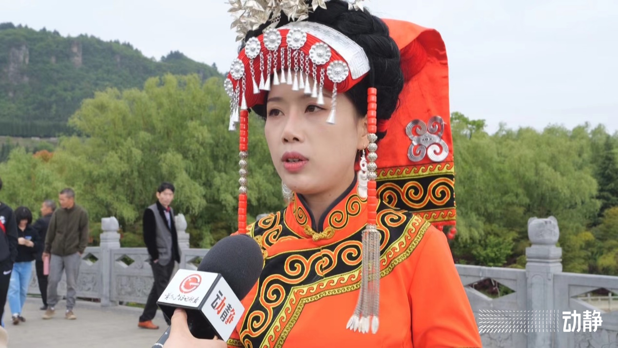 在大方县贵州宣慰府景区,记者赶巧碰上了县旅游副局长吴姣姣的“粉丝见面会”。