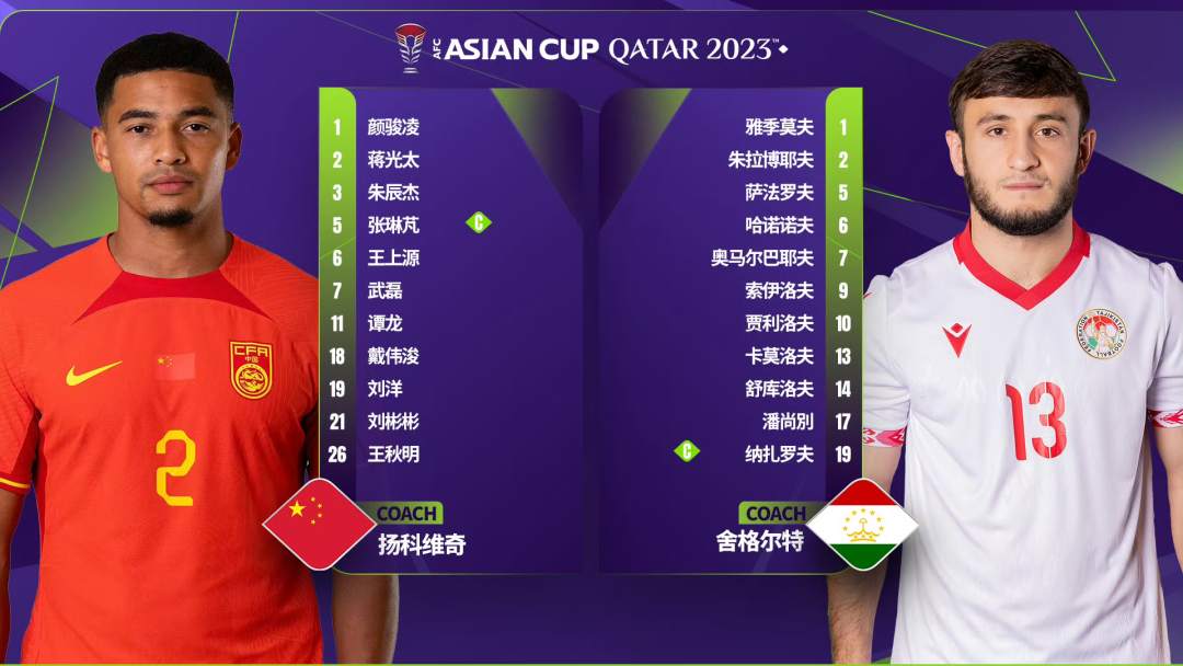 北京时间今晚22时30分,2023卡塔尔亚洲杯小组赛A组第一轮,中国队将对阵塔吉克斯坦队。这是中国队第十三次征战亚洲杯,对手是首次进入亚洲杯正赛。赛前,双方公布首发。