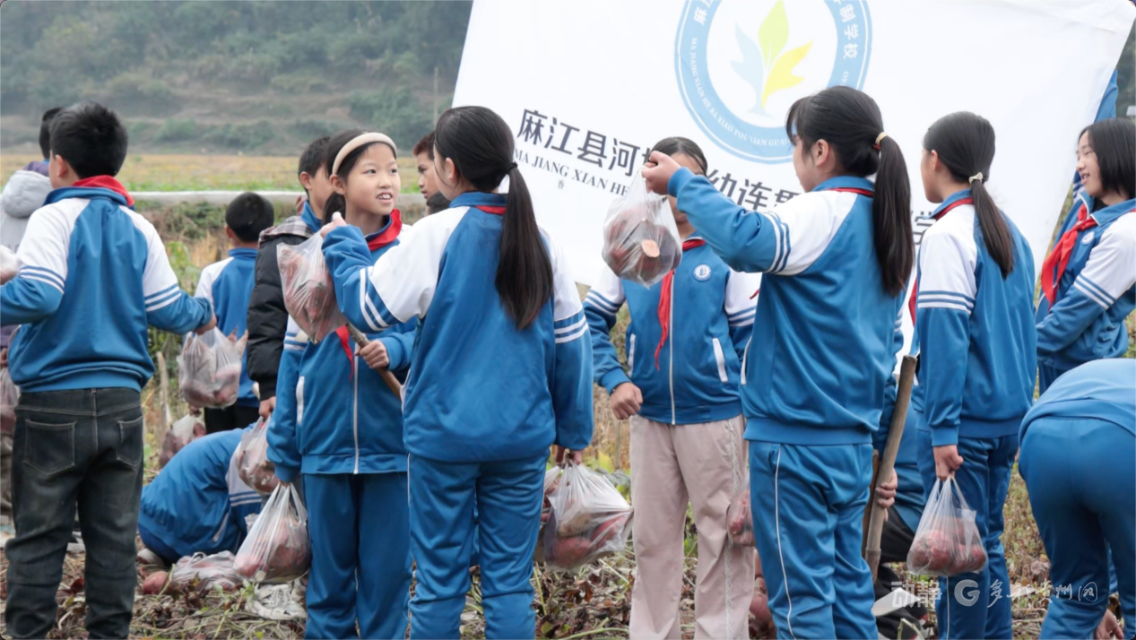 冬日时节,在黔东南苗族侗族自治州麻江县龙山镇河坝村,河坝小幼连贯九年制学校的学生们开启一场融合了非遗技艺、农耕体验与瑶族文化的乡土研学之旅。