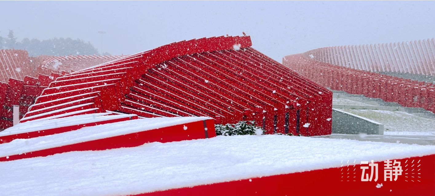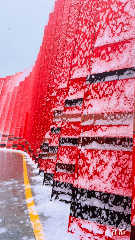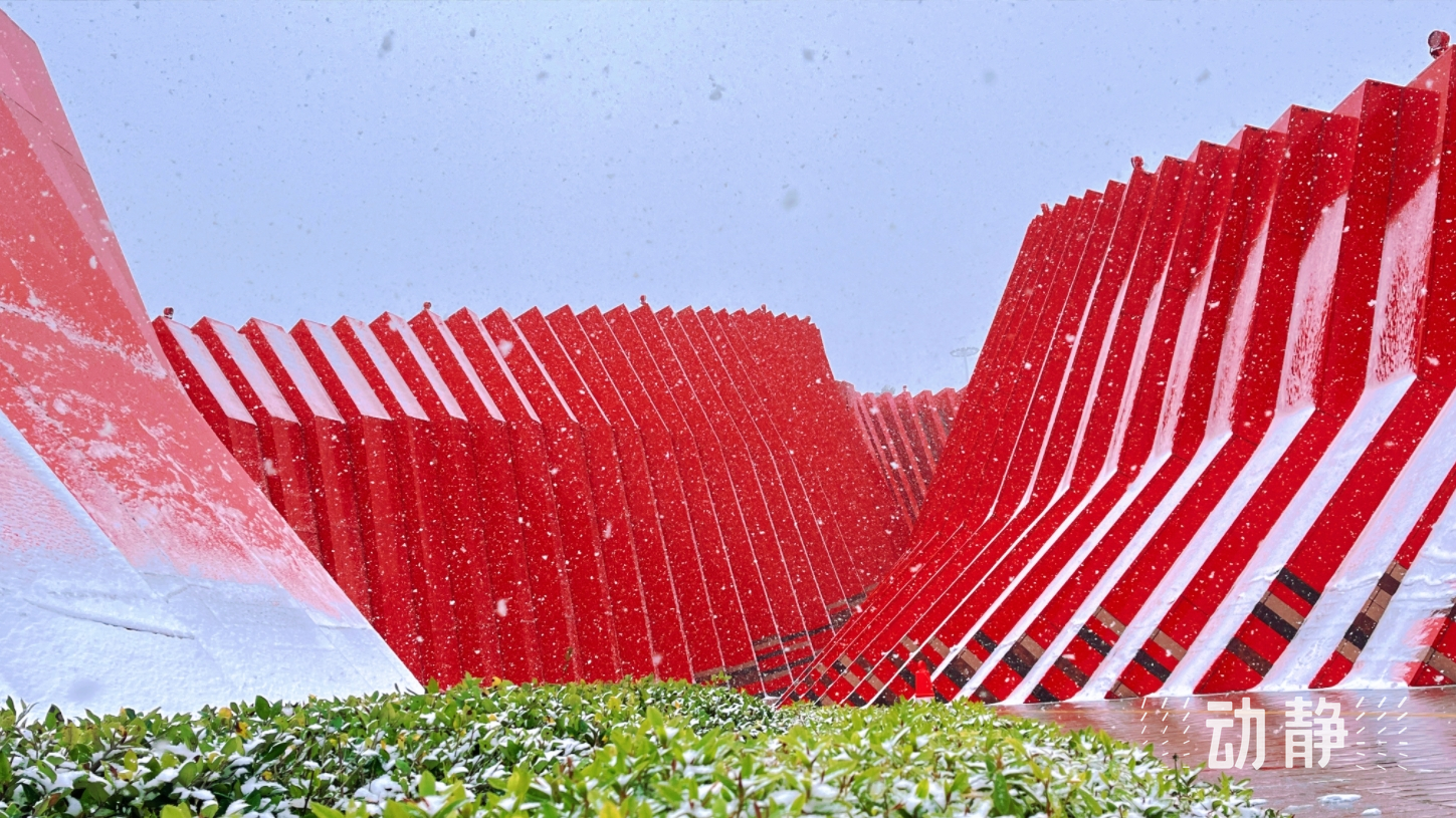 今天上午贵阳的初雪,也降临到位于双龙的红飘带。都说红色建筑和雪景最是相配,片片雪花自在飘舞,红墙在雪中显得更加静谧深沉,不仅给贵阳市民带来了一场美丽的自然景观,更是唤起了人们对历史的回忆和对文化的敬仰。