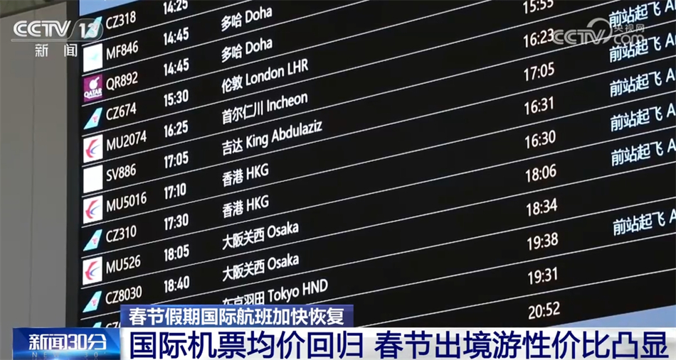 在多家在线预订平台上,2月8日至17日之间出发的国际机票搜索热度同比增长近7倍,超过2019年同期水平。其中,飞往“一带一路”共建国家的航班表现亮眼。