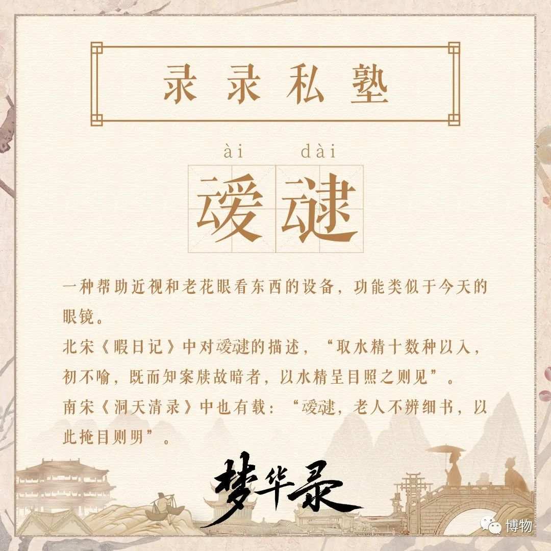 我们中国最早出现眼镜的时间也差不多,《梦华录》里杜夫子视如珍宝的“叆叇”,就是一种眼镜,最早记载于13世纪前半叶的南宋,不过杜夫子从哪里搞来的“叆叇”就不得而知了。