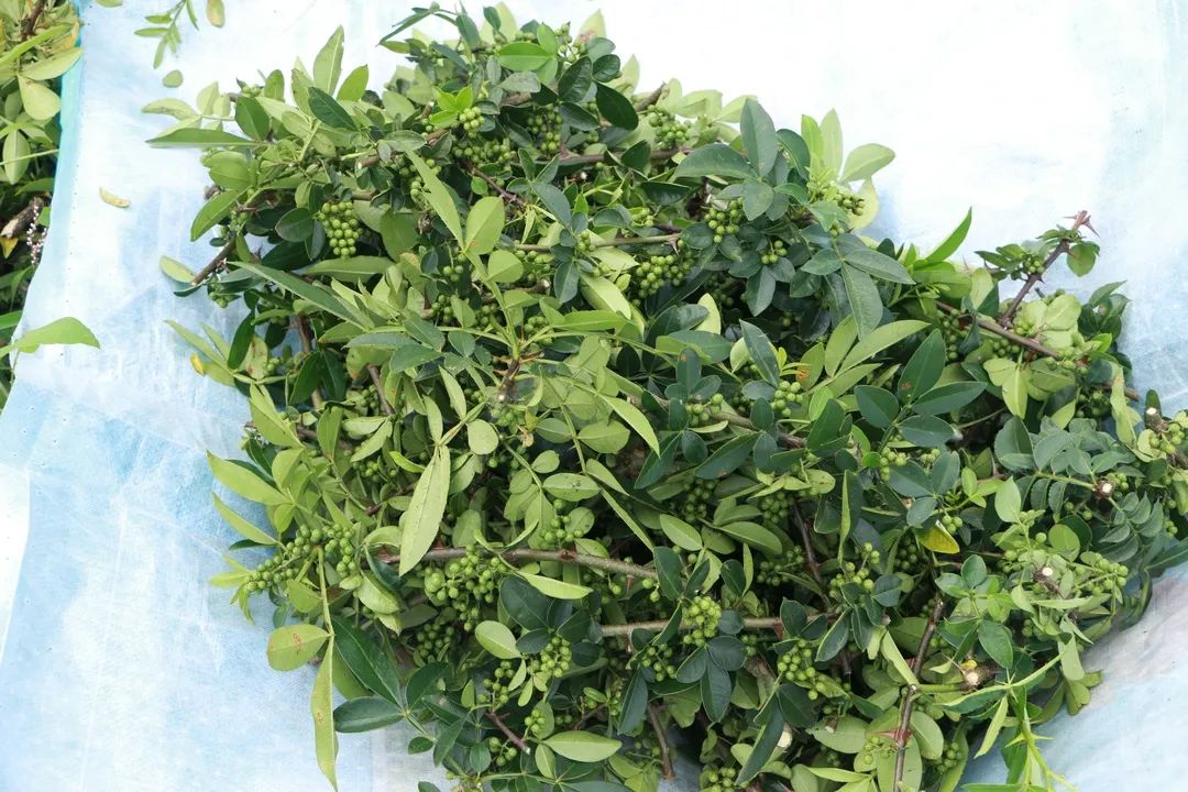 仲夏时节,恰是花椒丰收的季节。6月7日,记者走进茂兰镇水庆村花椒种植基地,田间地头里一树树花椒郁郁葱葱,缀满枝头,山风吹来,椒香扑鼻。当地村民正在忙着采摘花椒,把刚采摘下来的一摞摞花椒堆放在路边的卡车上,运送到附近的炕房进行烘干。
