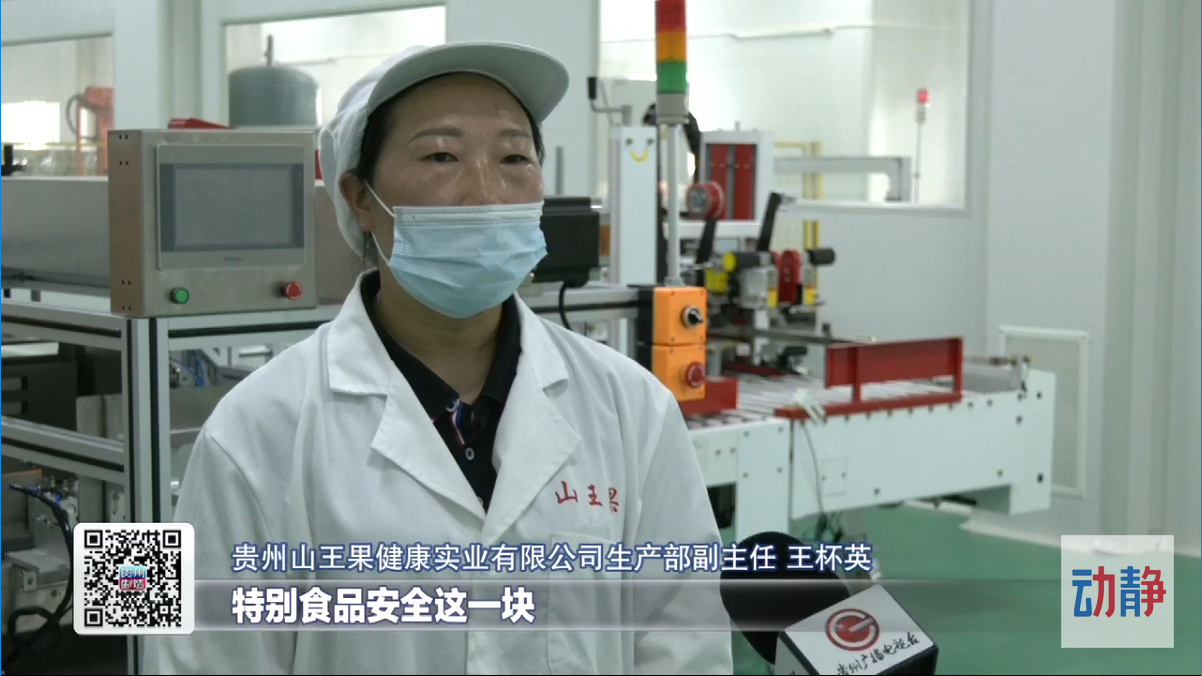 贵州山王果健康实业有限公司生产部副主任王杯英向记者介绍,在5G智慧化工厂建成投产之后,我们的效率和产能都提高了,特别是食品安全这块,从种植、采摘、生产到出品全程做到可溯源,从源头把控鲜果的质量,提高了产品的品质,高效率完成订单量。