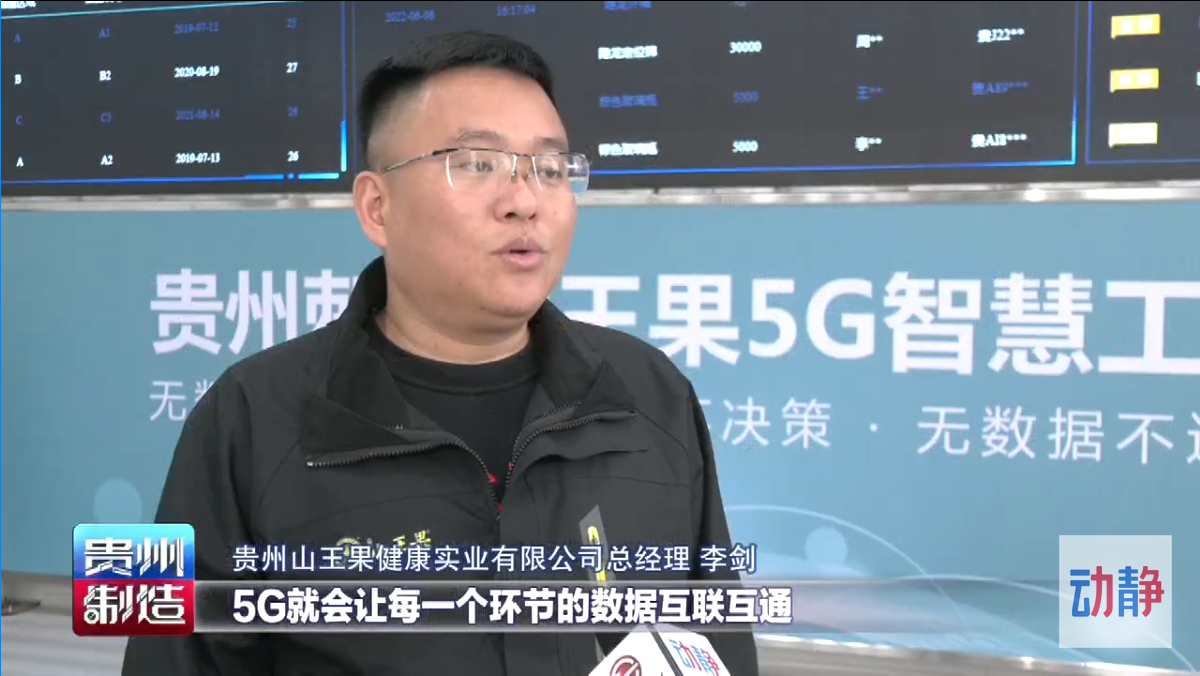 贵州山王果健康实业有限公司总经理李剑告诉记者,5G会让每一个环节的数据互联互通,让原来每一个独立的模块能够变成共用的一个数据平台。通过数据平台从源头到末尾所有数据的汇总,再智慧性地指导每一个生产的细节如何更高质量地去生产,更高效率地去提高我们的产能。
